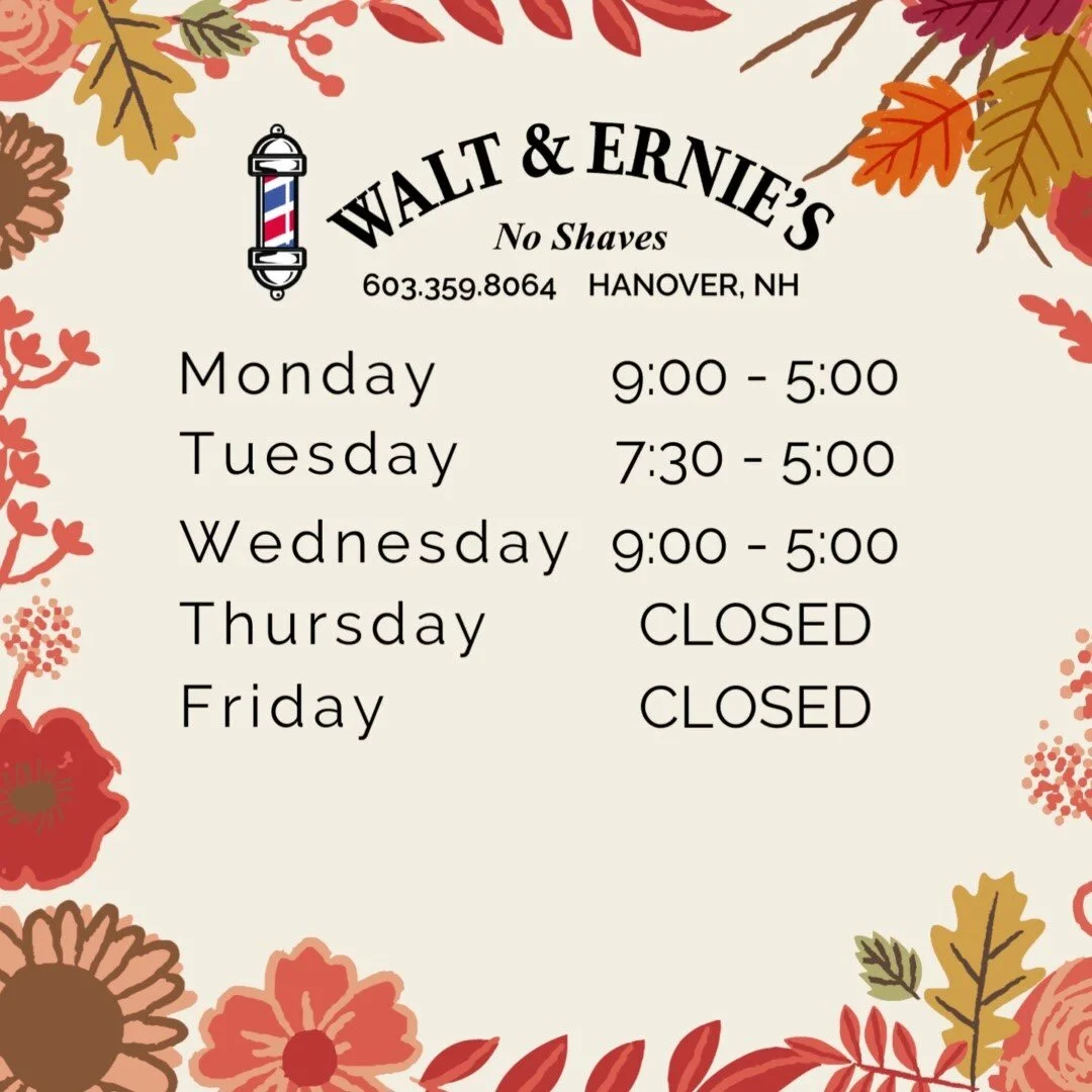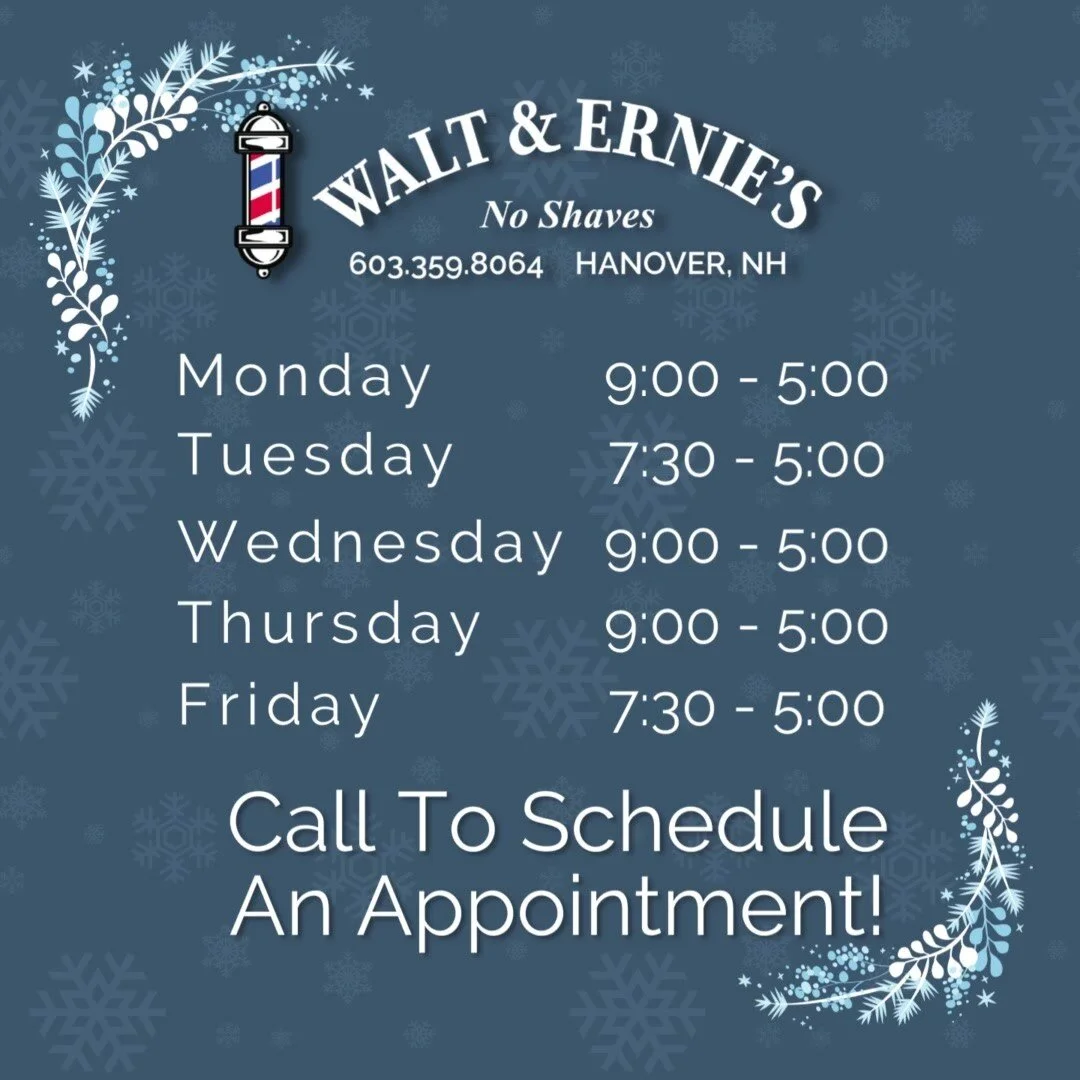 Walt & Ernie's Barbershop has been proudly serving the Dartmouth Community and Upper Valley Since 1938.